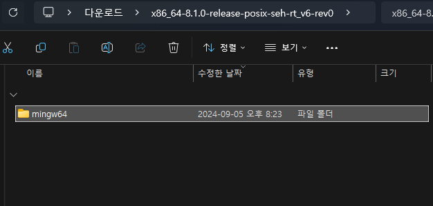 이제 압축 해제된 폴더에 들어가 mingw64폴더를 선택하고 C드라이브에 복사한다.