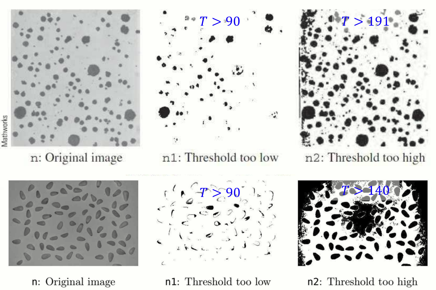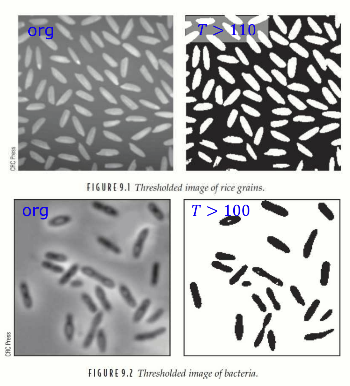 적절한 T 설정을 통해 쌀알과 박테리아의 주요 객체만 강조되었다.