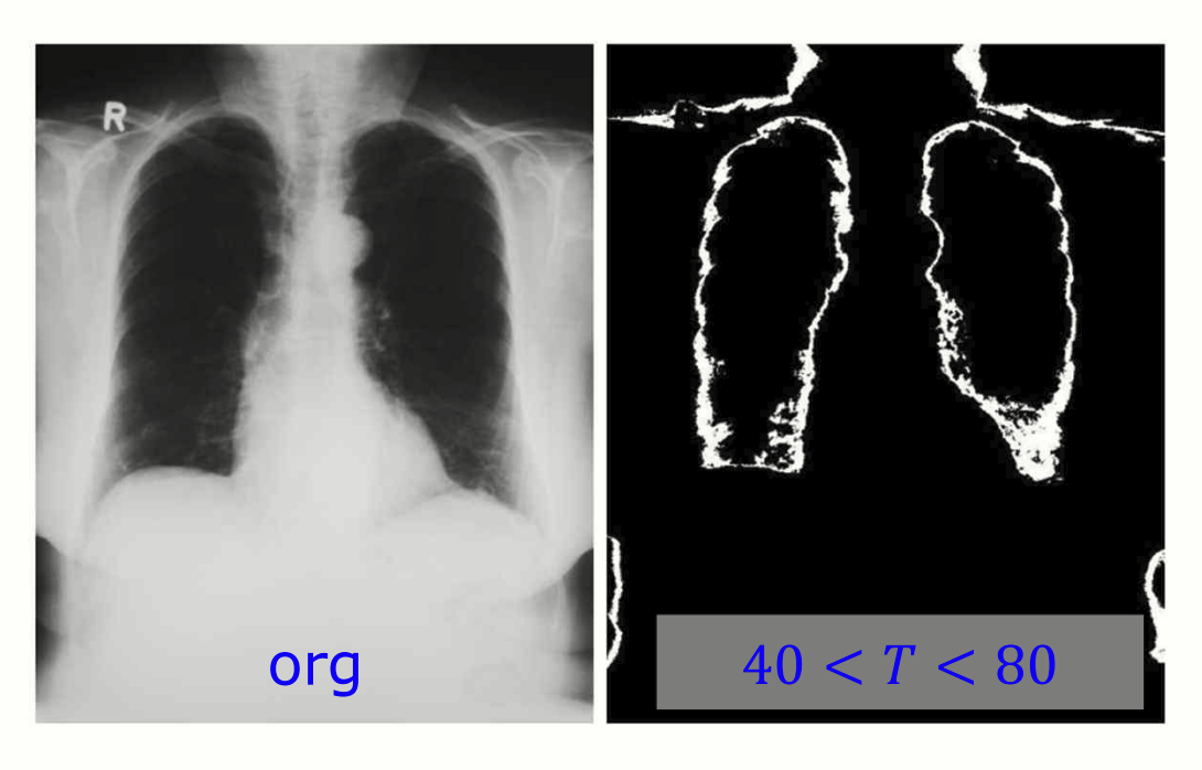 두 가지 임계값 T 를 설정하면 더 정교하게 segmentation 을 수행할 수 있습니다.
