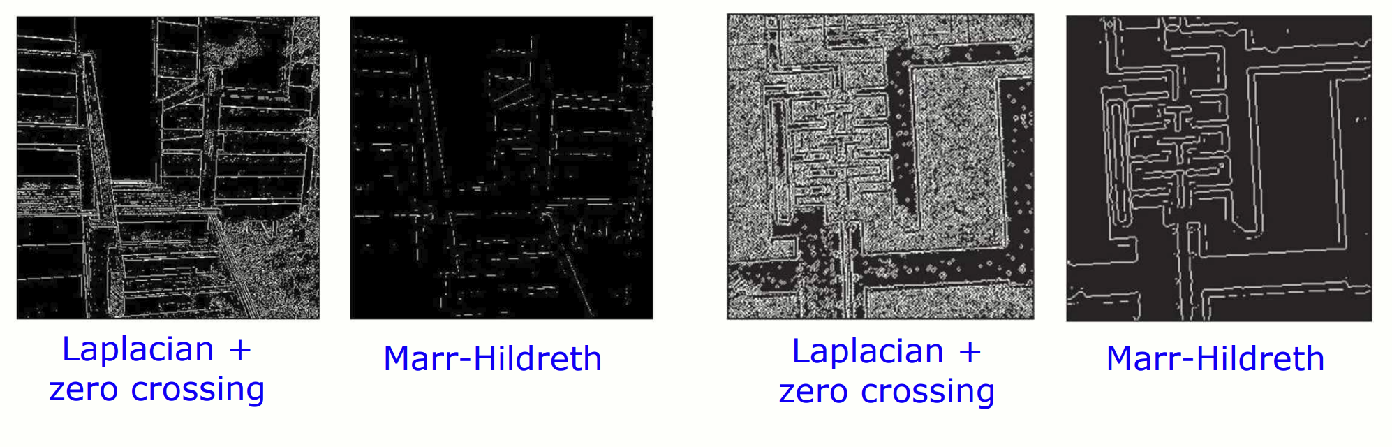 Marr-Hildreth 는 Gaussian 과 Laplacian 을 결합한 방법으로, noise 를 줄이면서 edge 를 검출하는 효과적인 기법입니다.