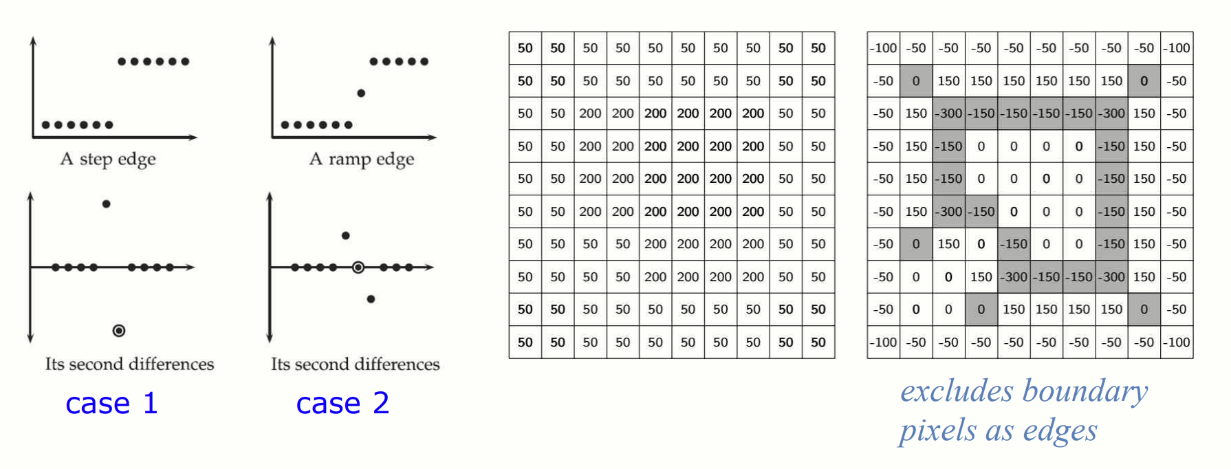 Zero Crossing 찾기: Laplacian 결과에서 Zero Crossing 을 찾아 edge 를 결정.
