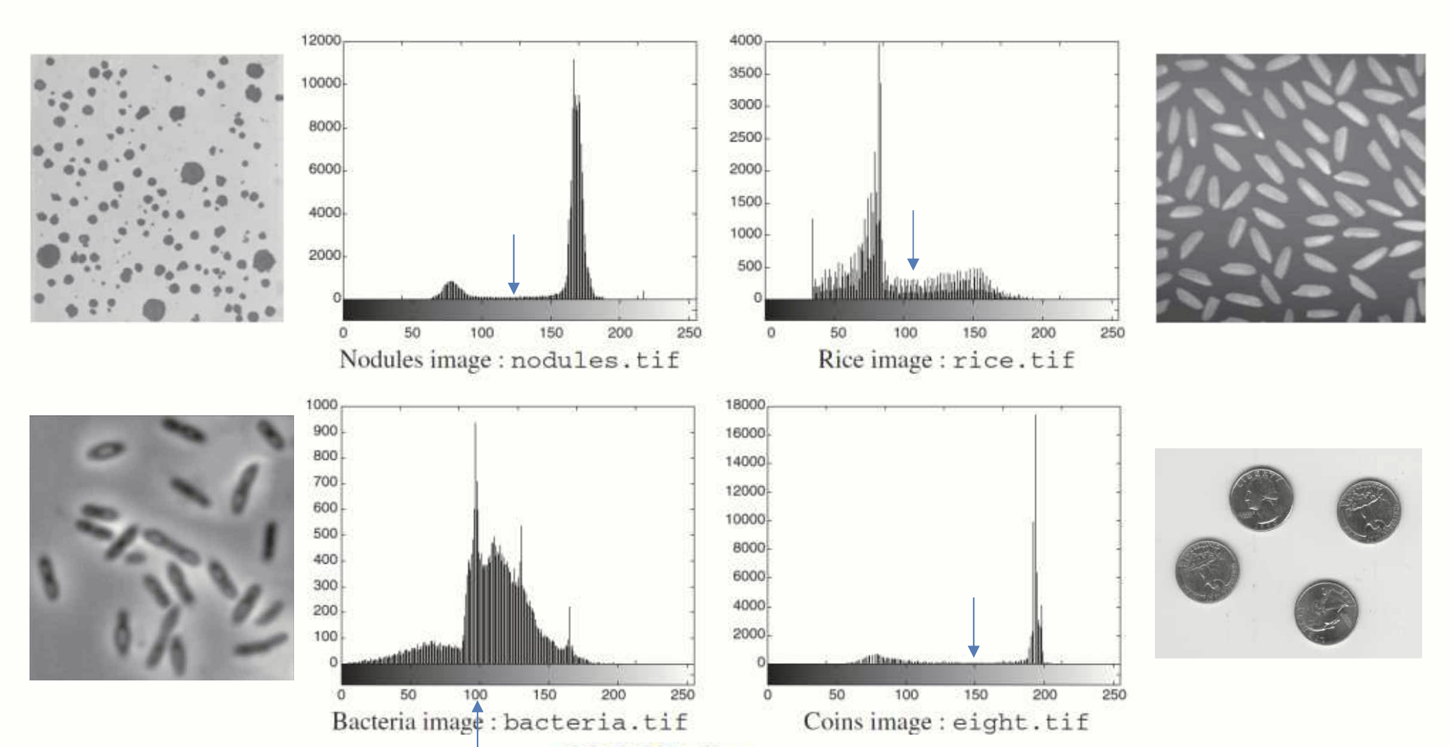 이런 히스토그램에서는 임계값을 찾기 쉽지만 모든 경우가 이렇지는 않다.