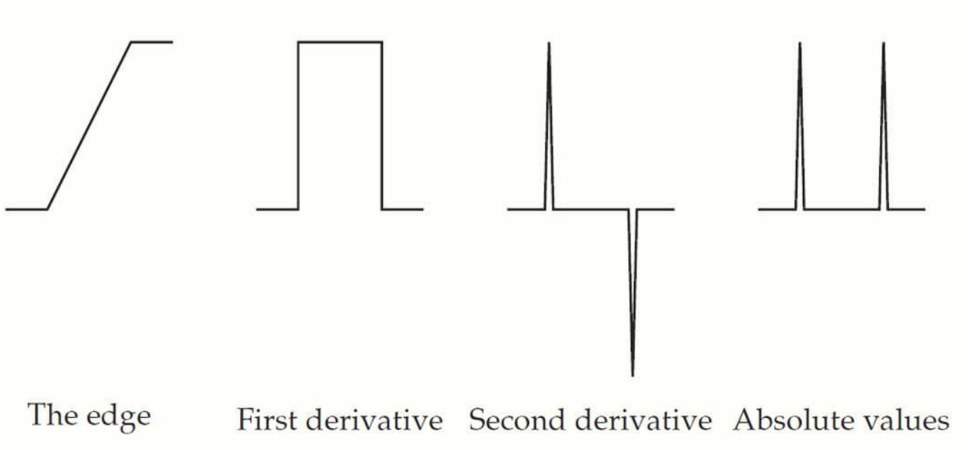 이미지에서 edges 는 픽셀 값이 급격히 변화하는 부분을 의미합니다. 1차 미분은 이러한 밝기 변화의 크기와 방향을 계산하여 edges 를 검출하는 데 사용됩니다.