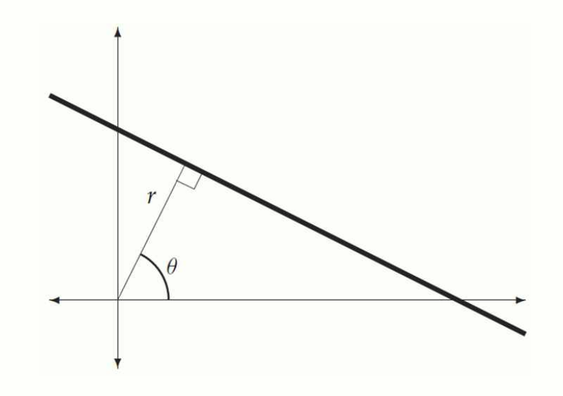 # Hough Transform 의 결과(각도와 거리)를 사용하여 직선 방정식 구하기