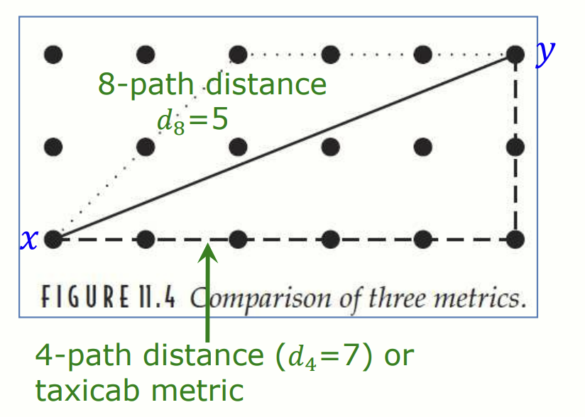 Morphology 에서 다뤘듯이 인접한 픽셀을 이야기할 때는 4-neighbors, 8-neighbors 로 표현합니다. 픽셀 P와 Q가 4-neighbors 이나 8-neighbors 이면, 각각 4-adjacent 또는 8-adjacent 이라고 합니다.