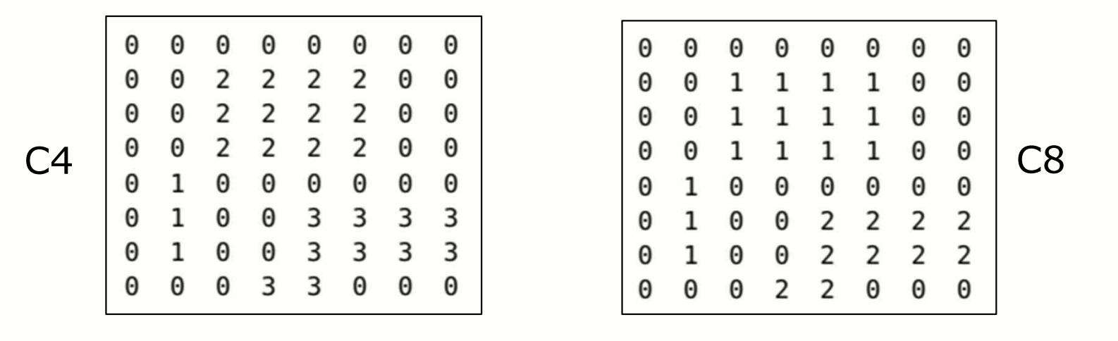 C8 = sm.label(image_example, connectivity=2) # 8-component