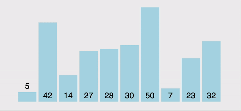 가장 간단하고 기본적인 정렬 알고리즘으로 두 인접한 원소를 비교하여 순서대로 정렬하는 방식