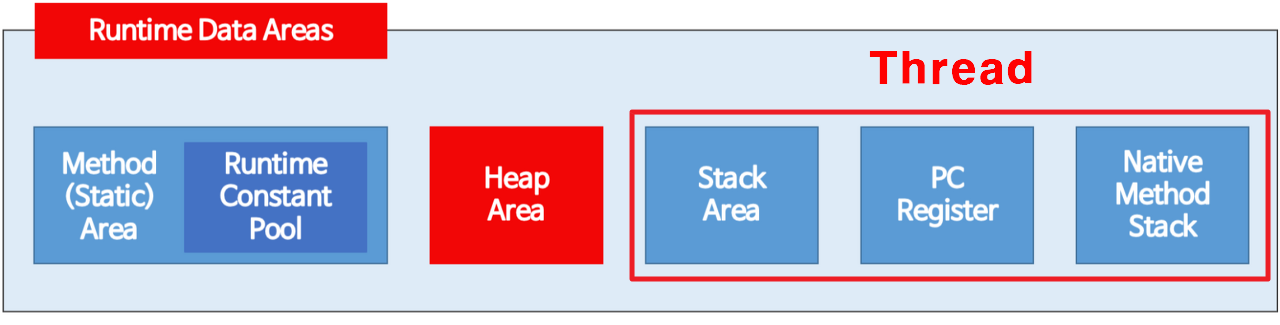 ์ฌ๊ธฐ๊น์ง ๋ฐฐ์ด ๋ฉ์๋ ์์ญ, ํ ์์ญ, ์ค๋ ๋ ์์ญ์ ํ ๊ทธ๋ฆผ์ผ๋ก ํ์ํ์๋ฉด ๋ค์๊ณผ ๊ฐ์ด ๋์์ด ๊ทธ๋ ค์ง๊ฒ ๋๋ค.