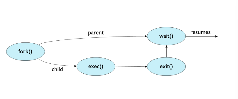- exit() : 프로세스가 마지막 명령문을 실행하고, 운영체제에 자체삭제를 요청.