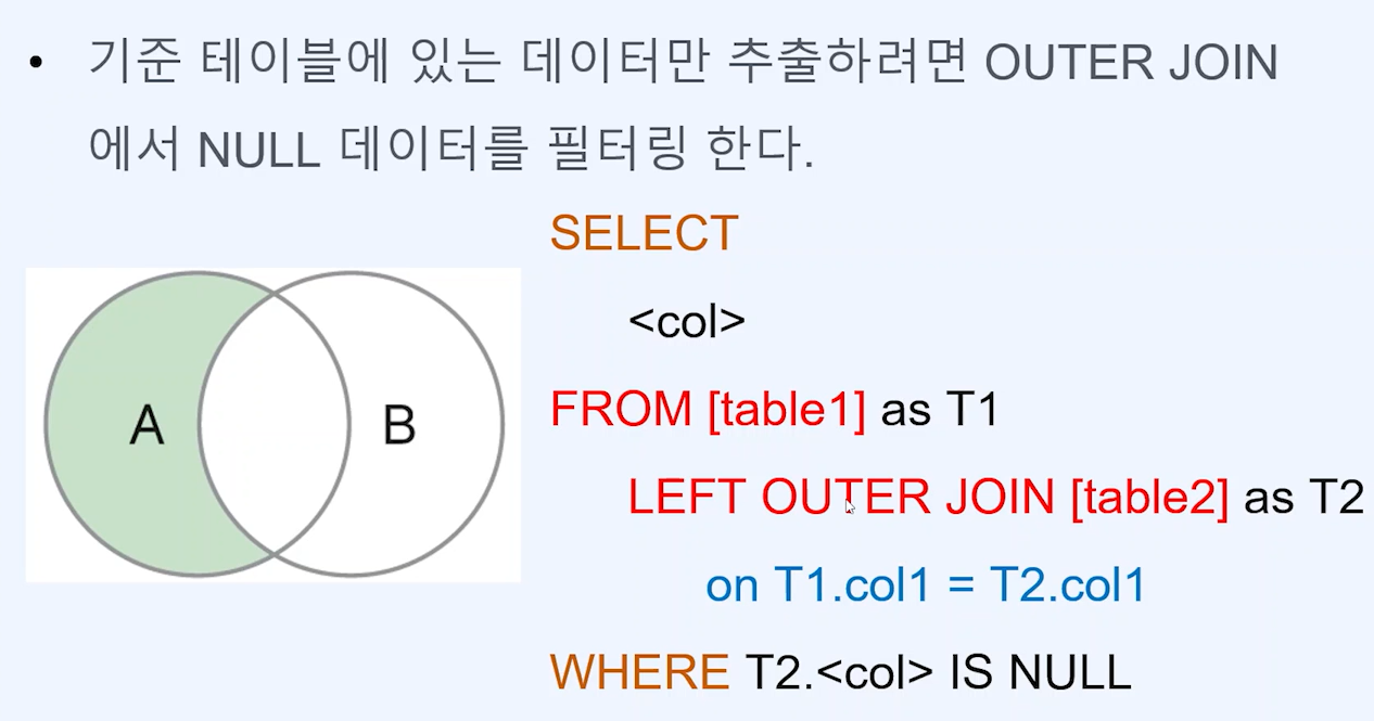 기준 테이블은 Join 조건을 만족하지 않아도 행이 출력됨