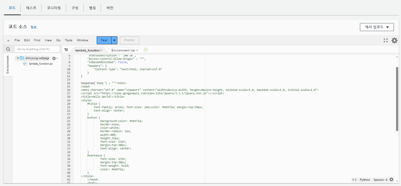 1. 웹페이지를 보여주는 함수 생성 : Simple Webpage lambda 생성하기