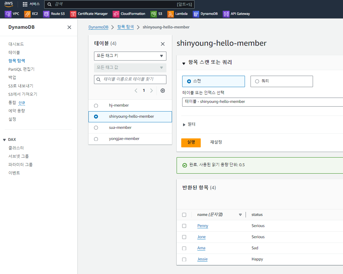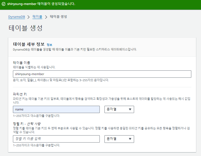 3. DynamoDB 생성 : API를 통해 값을 넣을 테이블 생성하기