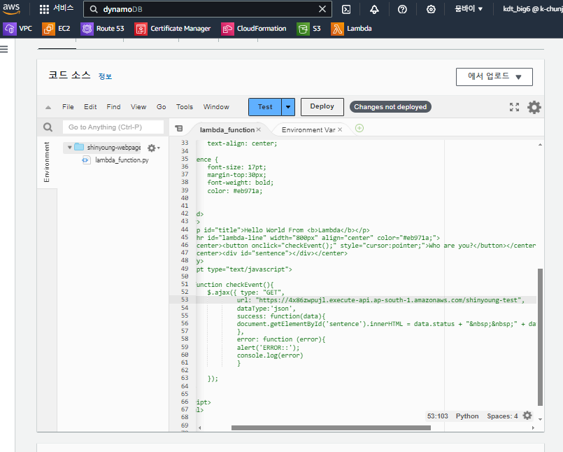 - Lambda 서비스 이동 후 Webpage 함수 수정