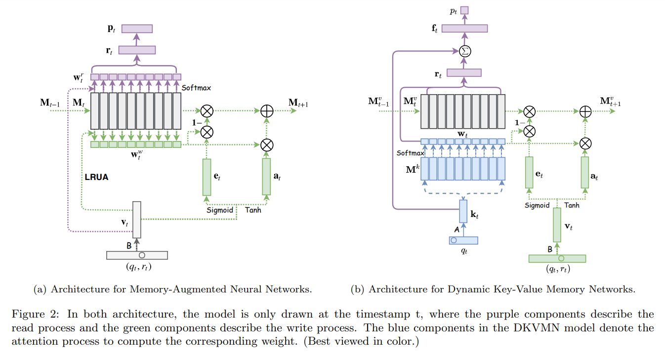 ๋ฌธํ (1) ๋ด์ฉ์ ์ฐธ๊ณ ํ์ฌ ๋ค์ ์ ๋ฆฌํ์์ต๋๋ค. DKVMN์์ ํ์ฉํ MANN์ NTM ๋ชจ๋ธ์ ์ผ๋ถ ๋ณํํ์ฌ ๋ง๋ค์ด์ก์ต๋๋ค.