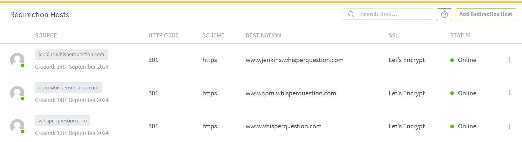 서버 운영을 위해 Jenkins, Nginx, WAS 등 다양한 포트에 바인딩되어 구동되는 도커 컨테이너들이 있는데, 이들을 특정 도메인 이름으로 접속할 수 있도록 하기 위해 proxy를 가장 앞에 두고 포워딩하는 것이 필요하다. 이런 Proxy는 nginx를 주로 사용하는데, nginx를 기반으로 UI를 제공하여 포트 포워딩 및 각 도메인별 SSL을 손쉽게 설정할 수 있도록 도와주는 것이 NPM(Nginx Proxy Manager)이다.