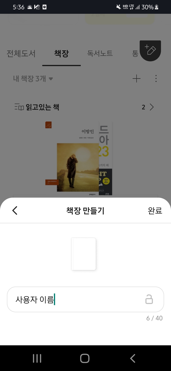 내 서재 항목 -> + 기호를 눌러주셔서 다른 파티원분들과 구분할 수 있도록 개인 책장을 만들어주세요.