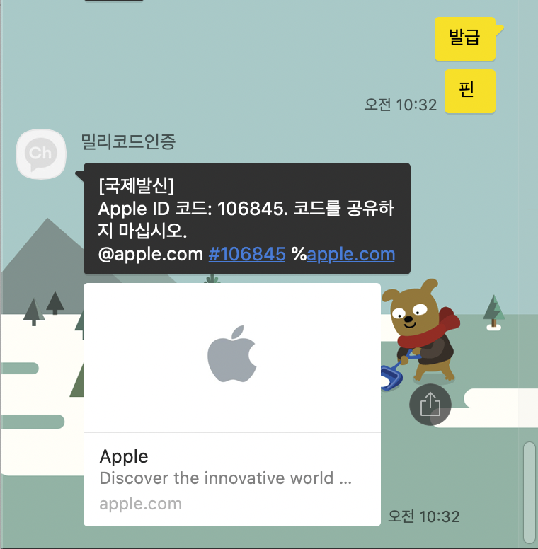 휴대폰 번호가 아닌 애플 기기한테 문자 메시지가 전송되는 경우가 있습니다. 이때는
