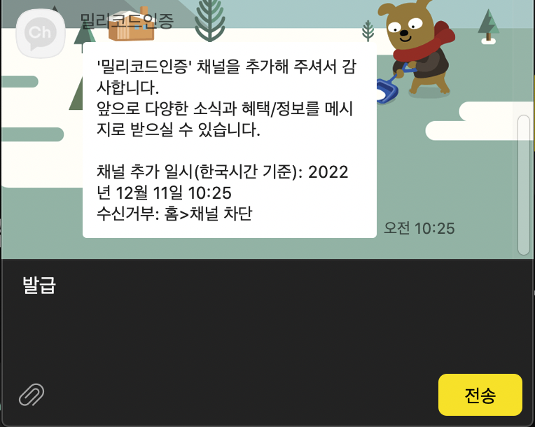 파란 글씨를 누르시고 문자 받기를 선택해주세요.