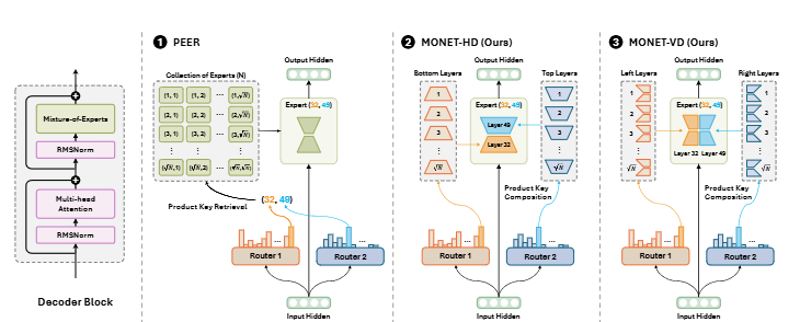 이 방식은 전문가 수를 확장하면서 메모리 병목 현상을 해결하며, 전문가 수의 제곱근 수준에서 파라미터 성장을 유지합니다.