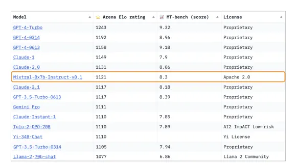 이 논문에서 우리는 Mixtral 8x7B, 최초의 mixture-of-experts 네트워크를 소개하며, 오픈 소스 모델 중 최고 수준의 성능을 달성했습니다. Mixtral 8x7B Instruct는 Claude-2.1, Gemini Pro 및 GPT-3.5 Turbo를 인간 평가 벤치마크에서 능가합니다. 각 토큰에 두 명의 전문가만 사용하므로 활성 파라미터 수는 13B에 불과하지만, 70B 파라미터 모델(Llama 2 70B)을 능가하는 성능을 보입니다. Apache 2.0 라이선스 하에 학습된 모델과 미세 조정된 모델을 공개함으로써, 우리는 다양한 산업 및 분야에 도움이 되는 새로운 기술과 응용 프로그램의 발전을 촉진하고자 합니다.