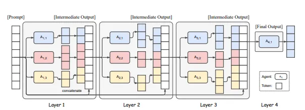 통합자 (Aggregator): 제안자들이 생성한 여러 응답을 종합하여 최종적인 하나의 응답으로 통합합니다. 통합자는 제안자들이 제시한 응답을 평가하고, 가장 적절한 응답을 선택하거나 여러 응답을 결합해 더 나은 결과를 만들어냅니다.