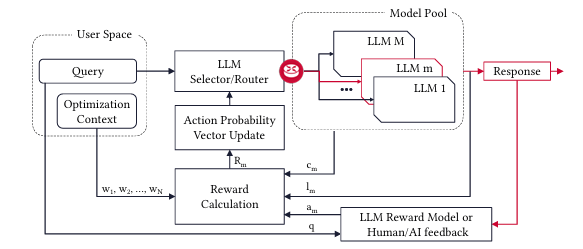 이 연구에서 우리는 주어진 사용자 정의 목적에 따라 특정 쿼리에 최적의 LLM 후보를 선택하는 문제를 해결합니다. 이를 위해 Reinforcement Learning (RL, 강화 학습)을 기반으로 한 경량 프레임워크인 PickLLM을 제안합니다. PickLLM은 쿼리를 다양한 모델에 라우팅합니다. 이 과정에서 쿼리당 비용, 추론 지연 시간, 응답 정확도와 같은 요소를 고려하는 가중 보상 함수를 도입합니다.