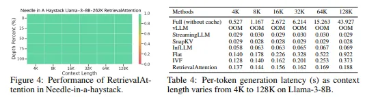 결과적으로, RetrievalAttention은 GPU 메모리를 절약하고, 동적으로 갱신된 키-값 벡터를 유지함으로써 긴 컨텍스트에 대한 효율적인 계산을 가능하게 합니다.