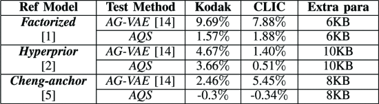 AG-VAE와 AQS의 BD-rate값을 비교하는 표이다.