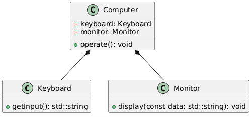 아래 예시처럼, 상위 모듈인 Computer에서 하위 모듈인 Keyboard, Monitor를 직접적으로 타입을 받아서 사용하면 나중에 입출력 부품이 바뀌거나 하는 경우에 유지보수에 어려움이 생김