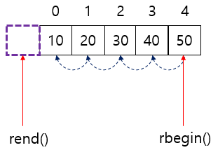 .rend(): 컨테이너의 첫 번째 원소 이전을 가리키는 역방향 반복자