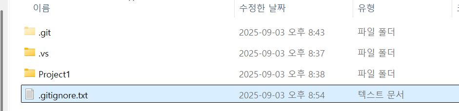새로운 repository를 만들고 해당 폴더에 .gitignore.txt파일을 생성