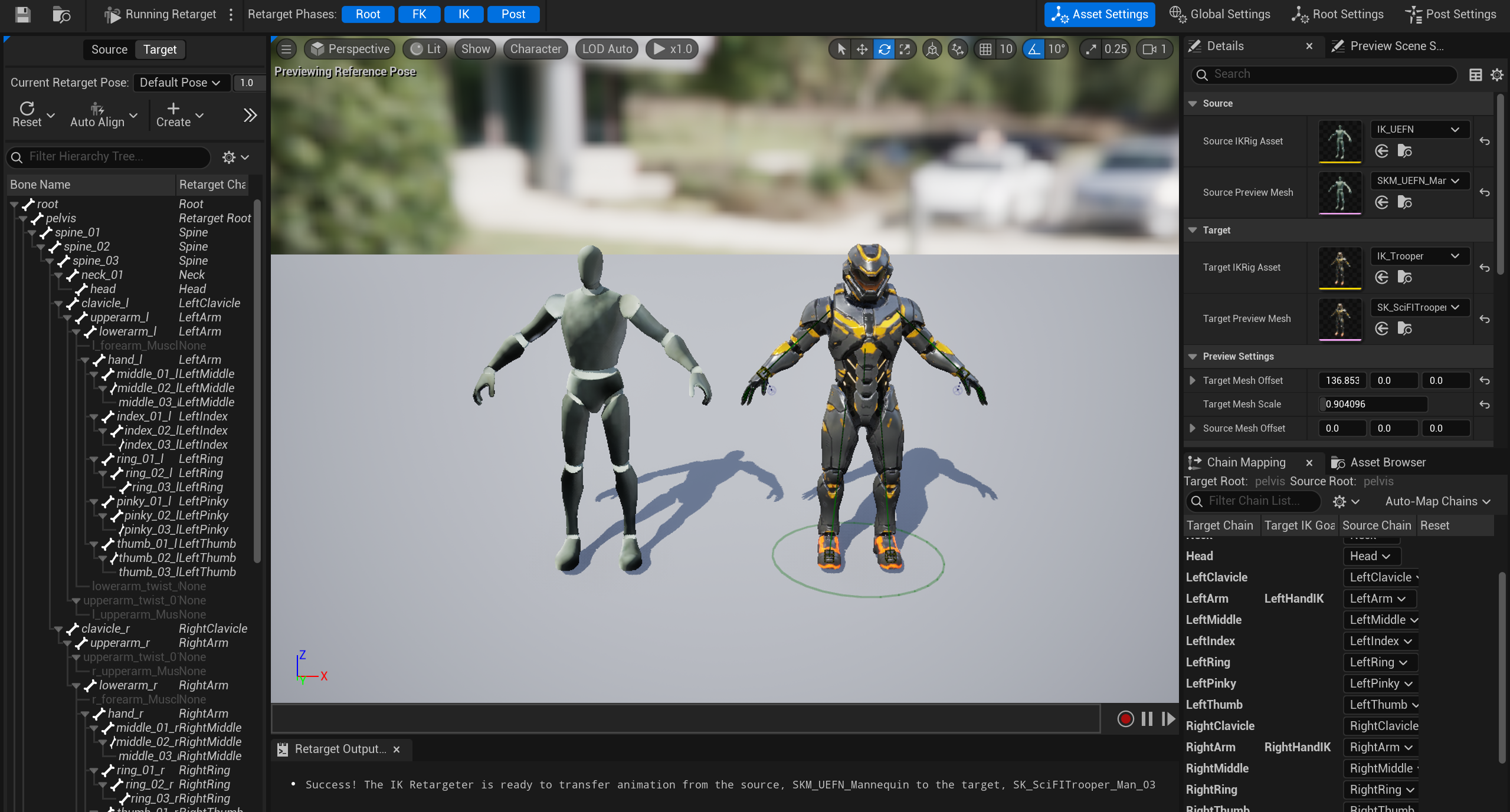 언리얼 에디터에서 Auto Create Retarget Chains 버튼을 누르면 자동으로 Retarget Chain을 생성해줌