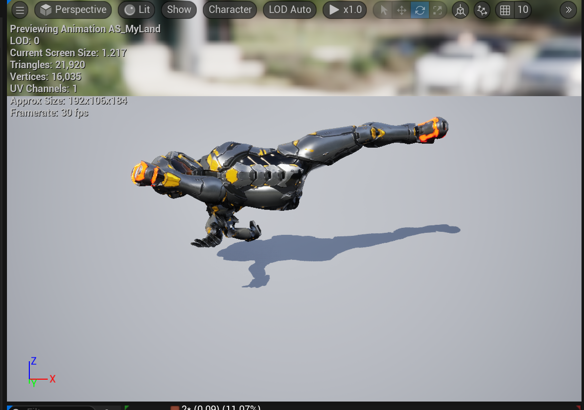 대부분의 애니메이션은 잘 적용이 되었지만, 위의 영상에서도 나온 Land 애니메이션에 문제가 발생