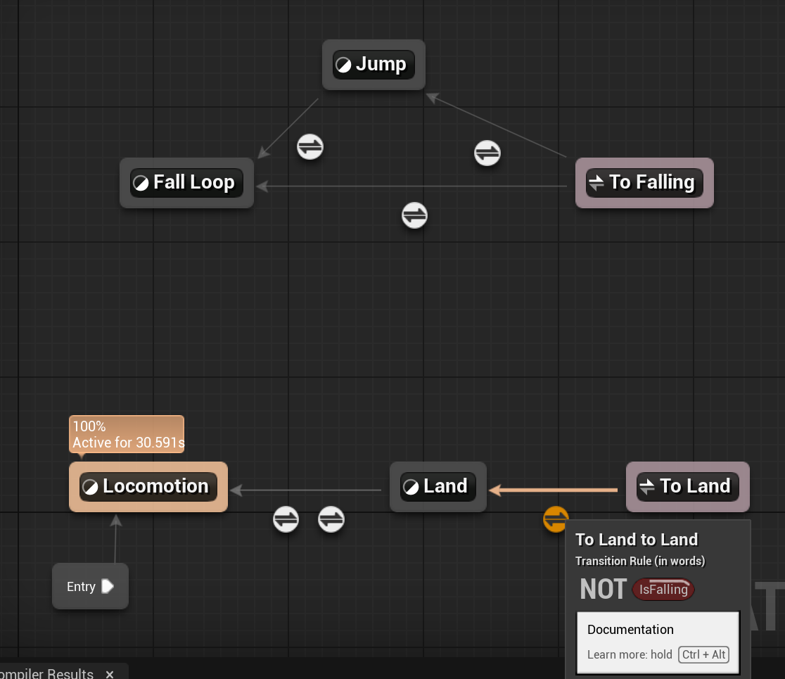 테스트 결과, 캐릭터가 지상에서 걷다가 떨어지면, 바닥에 착지해도 착지 애니메이션이 발생하지 않고 계속 Falling 애니메이션이 나타나는 것을 발견