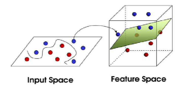 - 비선형 분류를 하기 위해서는 주어진 데이터를 고차원 특직 공간으로 사상하는 작업이 필요