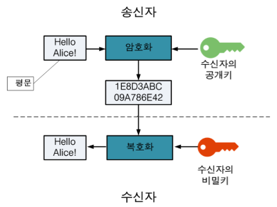 공개키 암호화: 공개키로 암호화를 하면 개인키로만 복호화할 수 있다. -> 개인키는 나만 가지고 있으므로, 나만 볼 수 있다.