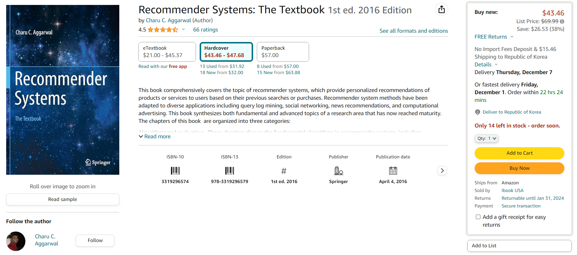 Amazon은 유저가 책을 구매할 때, 해당 책을 본 다른 유저들은 어떤 책을 또 함께 봤는지 추천해주는 추천 시스템을 통해 유명해졌다.