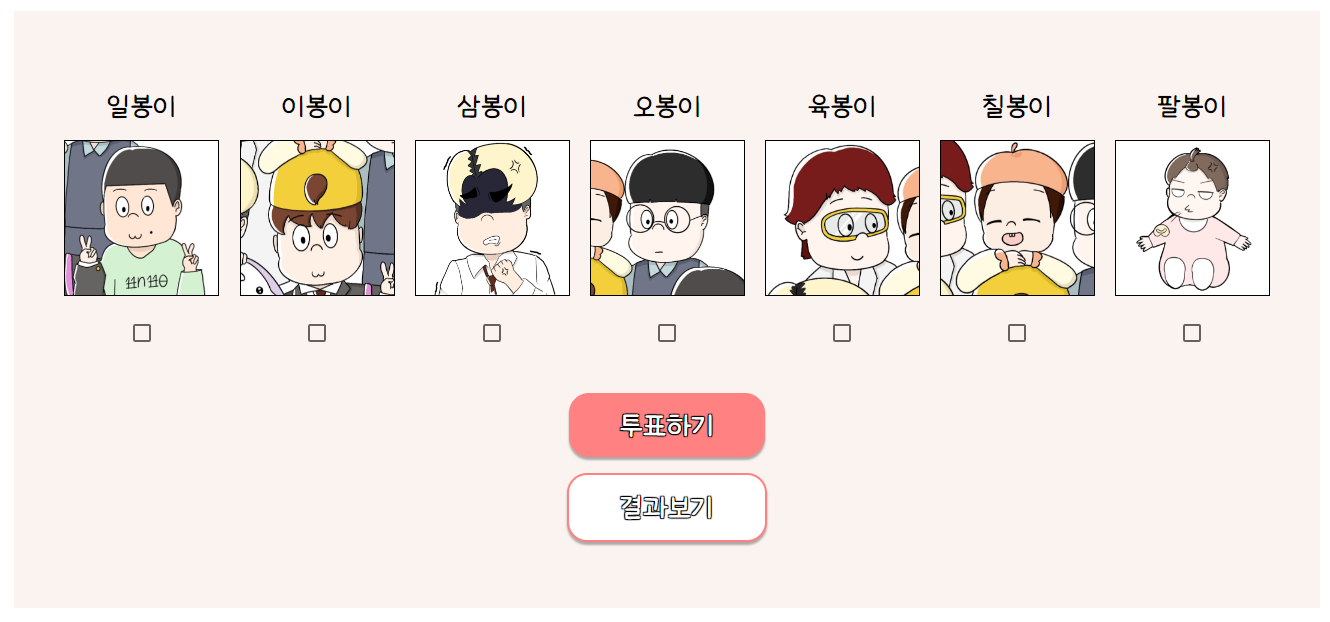 투표 대상은 일봉이, 이봉이, 삼봉이, 오봉이, 육봉이, 칠봉이, 팔봉이로 총 7명입니다!