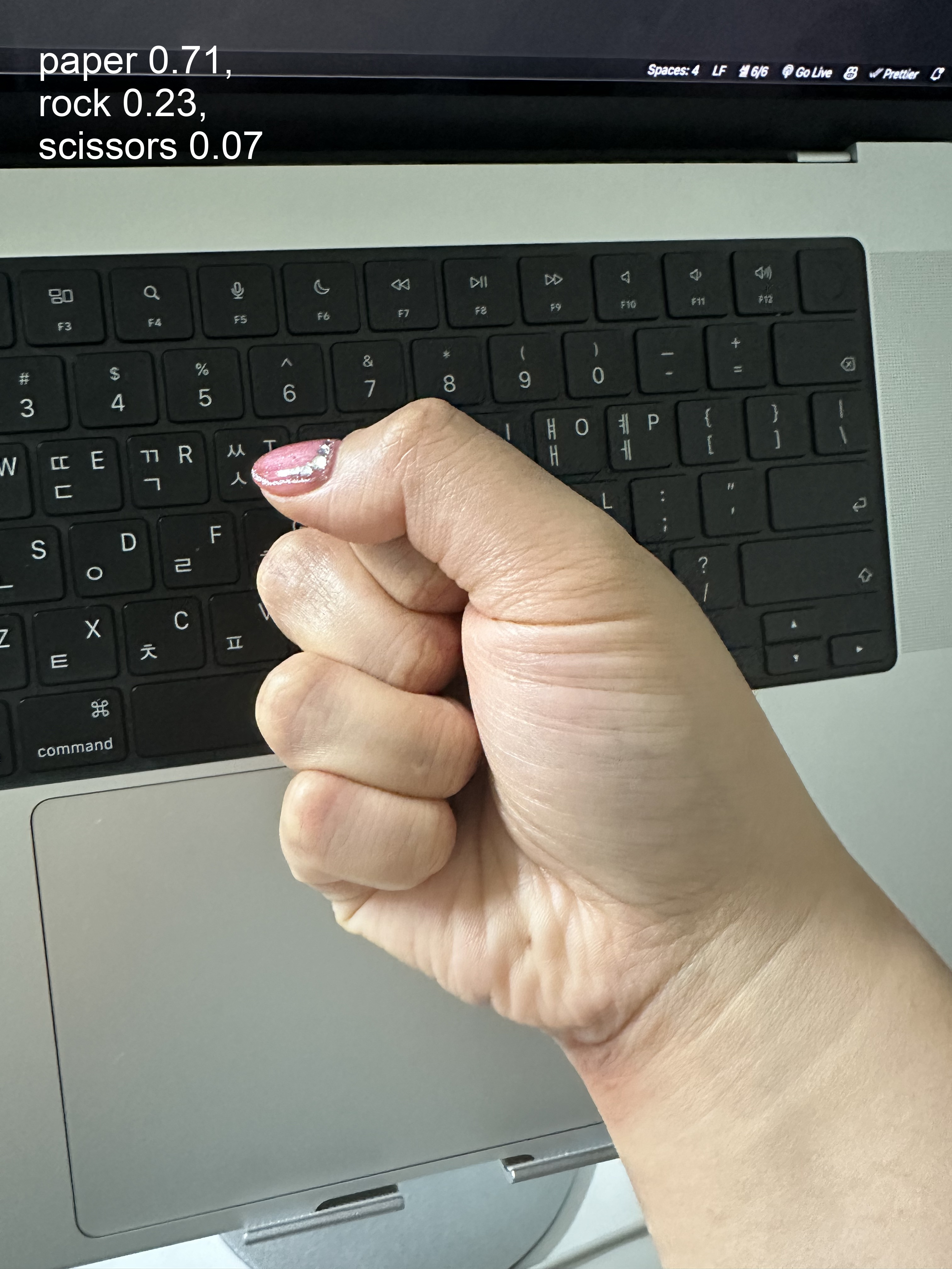 그래도 주먹 사진에서는 보자기 다음으로 주먹의 확률이 높고, 가위 사진에서도 보자기 다음으로 가위의 확률이 높다
