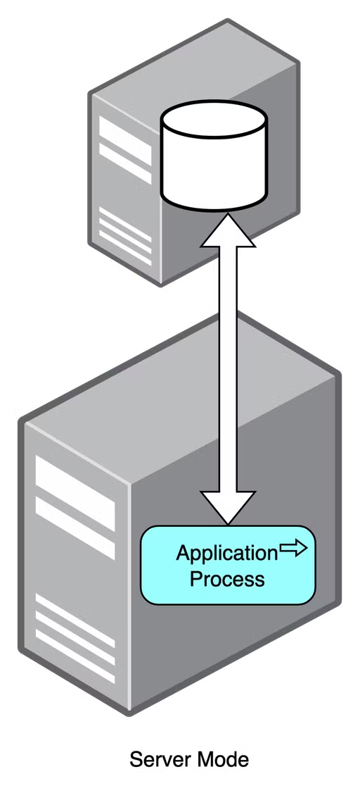 - 서버 모드는 현업에서 사용하는 모드로 컴퓨터에 Db엔진을 설치하고, 엔진을 구동하여 사용하는 방식이다