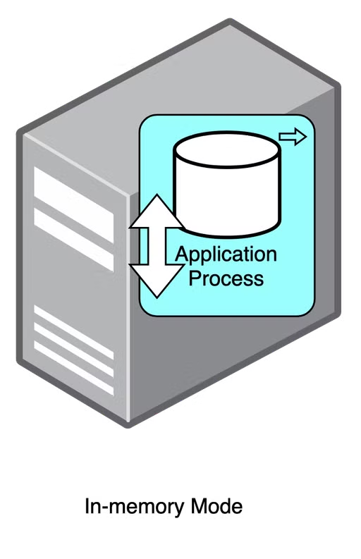 - 인메모리 모드는 애플리케이션에 Db엔진이 내장되어서 애플리케이션과 함께 실행되고 종료한다
