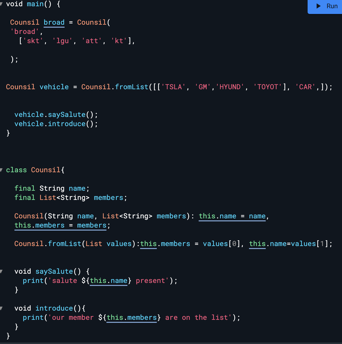 ex) DateTime.now()함수는 코드가 실행되어야 값이 확정되므로 final 값을 쓴다.