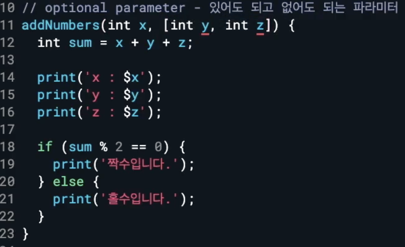optional parameter의 경우, parameter값을 넣으면 기본 값이 무시된다.