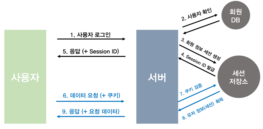 JWT보다 역사적으로 오래된 인증방식이며 Django나 Spring Security에서 기본적으로 제공하는 인증방식이다.