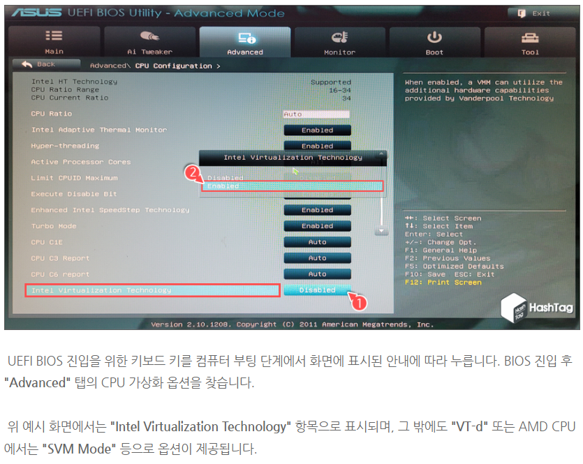 2-3. 'system configuration'으로 가서 'virtualization technology'가 enable인지 확인하기.