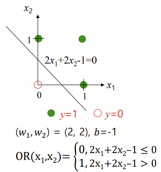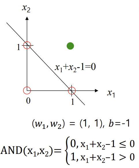 -> Single-Layer Perceptron의 경우, 이진 분류 문제를 해결하는 데 사용됨 (선형 분류기 역할, 선형적으로 구분할 수 있는 문제에서만 사용)