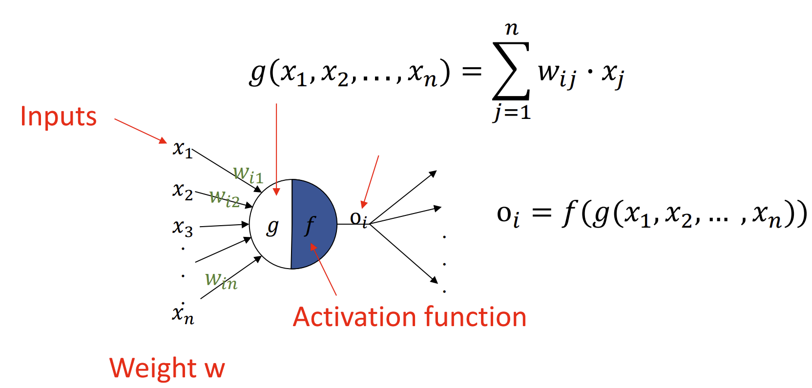 : Input을 가중치와 함께 선형 결합한 후, 이 값에 활성화 함수를 적용해 출력함