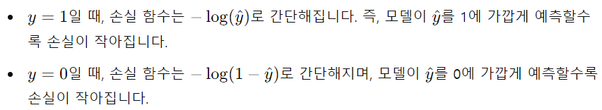 -> 모델이 잘못된 예측을 하면 큰 손실값을 반환함!