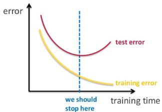 -> Validation set을 사용하여 적절한 epoch(위 그림의 파란 선)을 찾음!