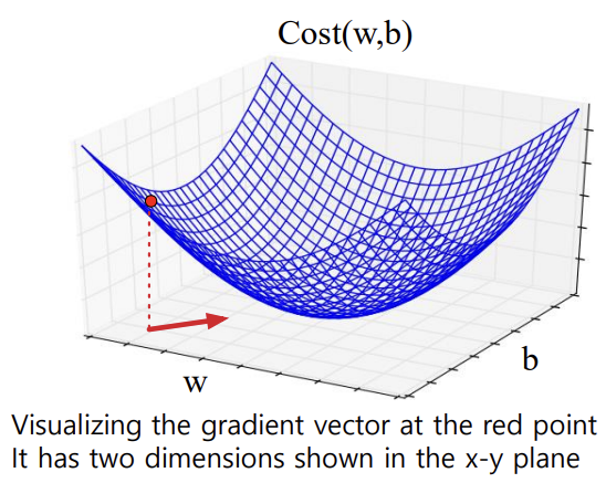 -> 각 차원 wi에 대해, 기울기의 성분 i는 해당 변수에 대한 경사를 나타냄
